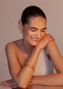 Golden plated silver with a snake symbol to honour the oldest and most widespread mythological being. Known as the symbol of fertility, we promise an abundance of goodness. Perfect for the summer arm candy.
